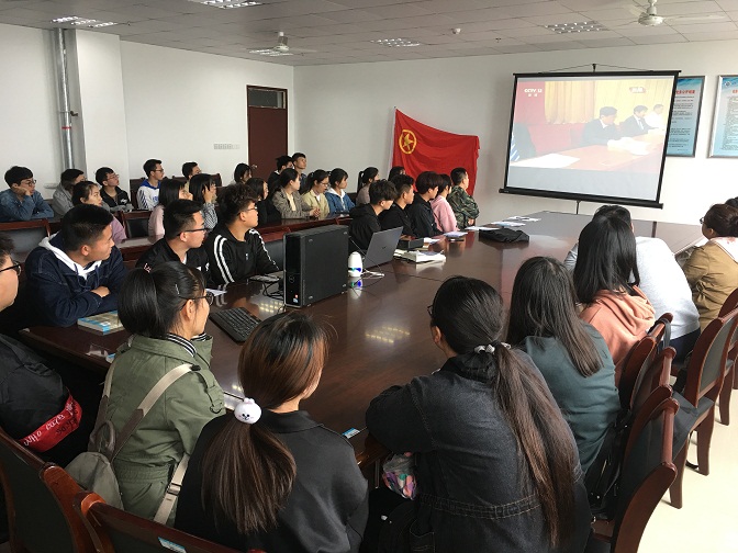 为纪念五四运动一百周年,高举爱国、进步、民主、科学的伟大旗帜,4月30日上午经济与管理学院团总支书记职亮、辅导员夏晓燕、张晶以及17市场营销对口班、18工程管理班部分同学在学院会议室集中观看“纪念五四运动100周年大会”直播。。