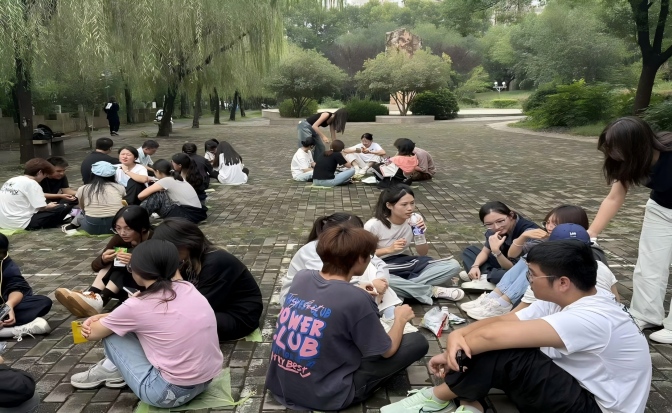 上午,师生们踏着丝丝秋雨,抵达张公山公园。公园内秋意乍现,桂香扑鼻,在垂柳环绕的小广场,同学们席地而坐,热情高涨,玩起了“你画我猜”等游戏,大家充分发挥想象力,用生动的肢体语言和夸张的表情传递信息,现场气氛热烈非凡,一时间欢声笑语不断。游戏互动、组队比赛让同学们增进了对彼此的了解、距离瞬间拉近,默契配合让原本的“陌生”迅速“破冰”,取而代之的是浓浓的同窗情谊和团队协作。
