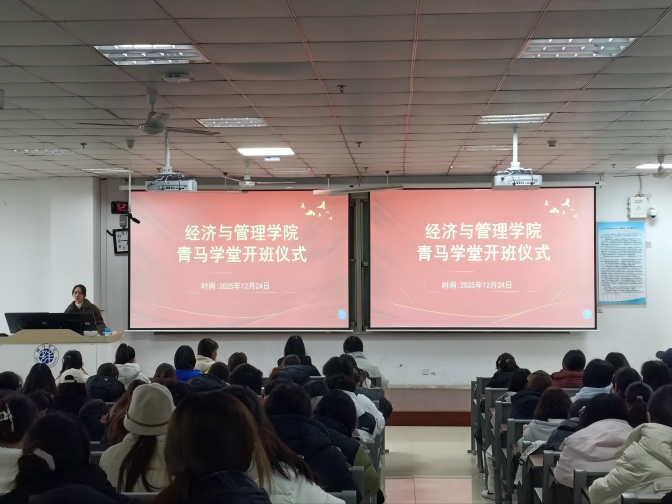 2025年12月24日中午12:30,经济与管理学院2025年“青马学堂”开班暨2024年“青马学堂”结业仪式在学院教学楼G306教室顺利举行。