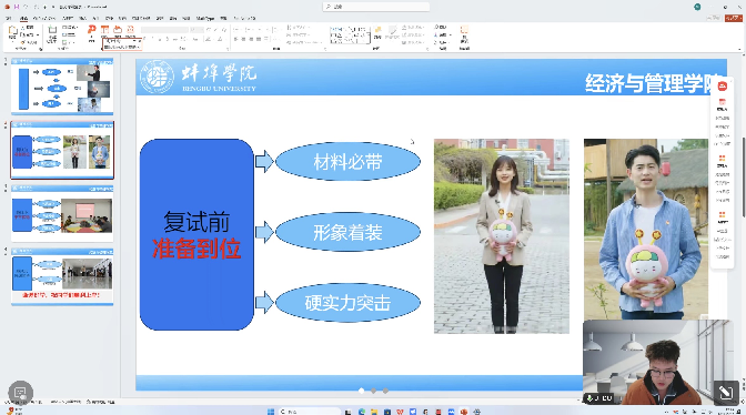 夏晓燕主持本次活动。她介绍了两位主讲嘉宾,阐明本次辅导会的核心目的,希望同学们珍惜学习机会,将实用技巧运用于备考实践,为成功上岸打下坚实基础。赵睿、陈荣祝贺同学们进入复试,勉励大家内化所学、沉着应战。